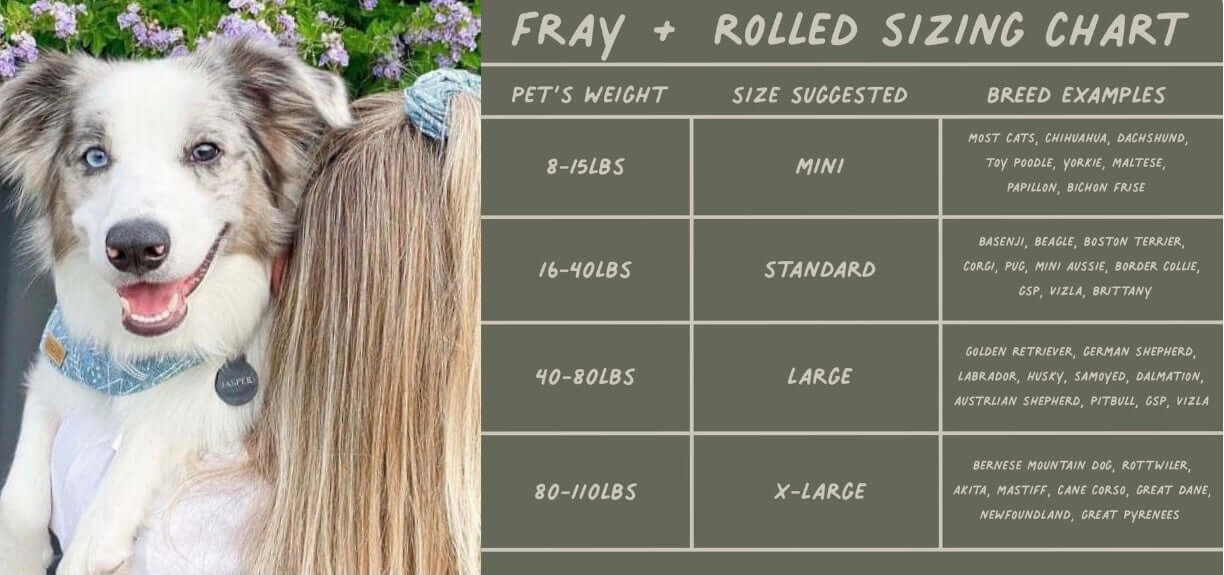 - Bandana is made as a square to allow it to be rolled or laid flat to fit your furbaby's height.
